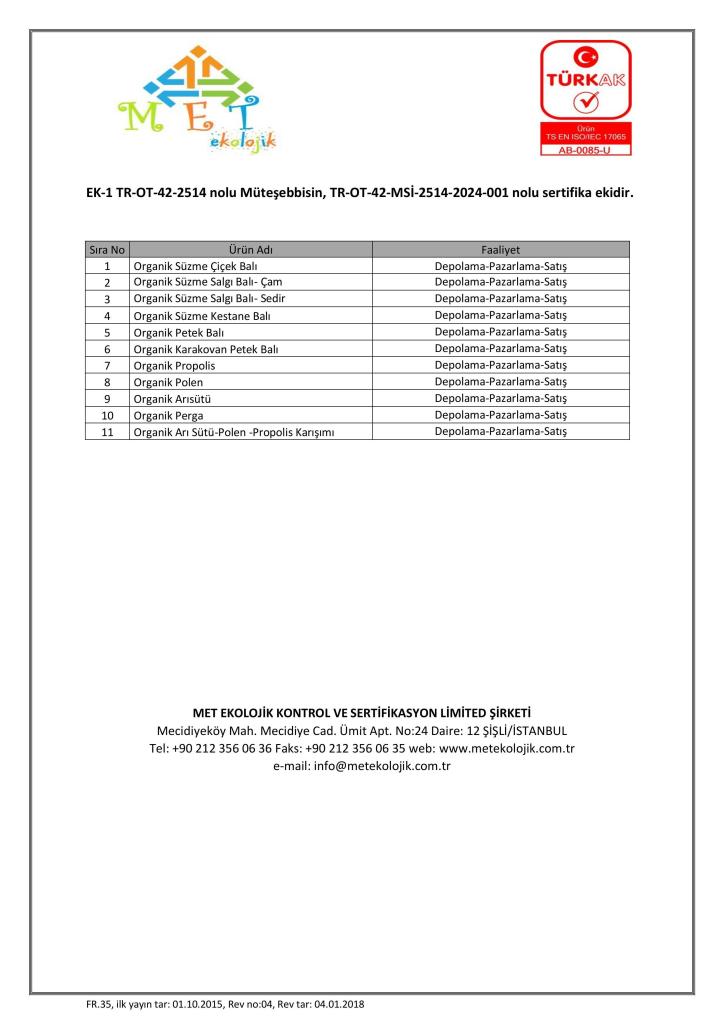 Sertifikalar ve Analiz Raporları